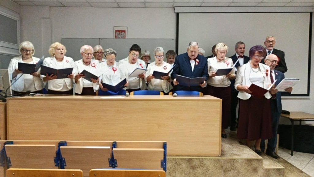 Te opowieści usłyszeliśmy: – w pieśniach patriotycznych, legionowych śpiewanych przez Chór UTW pod kierunkiem Alicji i Waldemara Sołtysów. Były to m.in. pieśni: „Marsz, marsz Polonia”, , „Pierwsza kadrowa”, i popularne powszednie znane piosenki żołnierskie, „ Hej, hej ułani, ‘O mój rozmarynie”, „Orlątko”, „Puszcza Jodłowa”, „Warszawskie dzieci”. – i wykładzie wygłoszonym przez mgr Krystynę Krzemińską- „Droga do Niepodległej – Marszałek Józef. Piłsudski.”, w którym przedstawiona została sylwetka kluczowego polskiego polityka, który stał się symbolem odzyskania niepodległości w 1918r i odegrał zasadniczą rolę w zjednoczeniu społeczeństwa wokół idei niepodległości i kształtowania granic II Rzeczpospolitej i budowaniu Wojska Polskiego.. Jego rola obejmowała m.in. dowodzenie Legionami, funkcję Naczelnika Państwa a po 1920 roku urząd premiera i rząd sanacyjny.