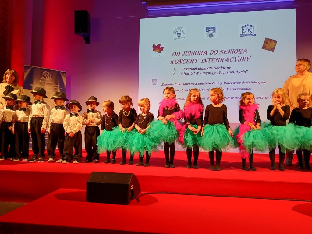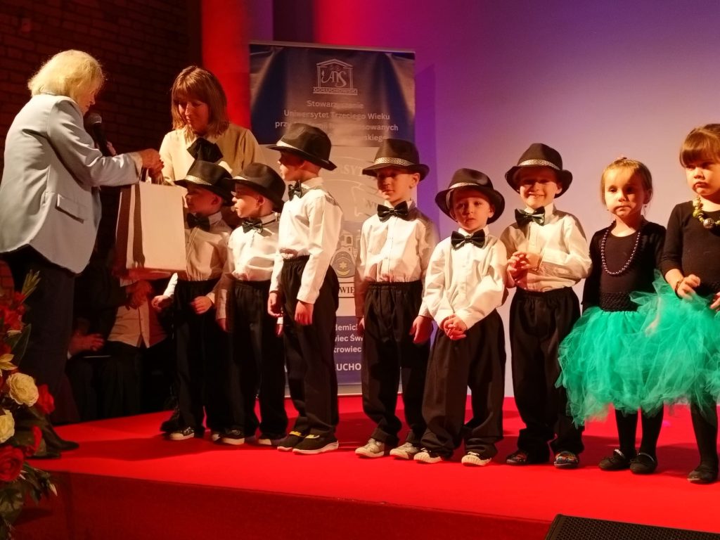 * Koncertu Integracyjnego p.t „Od Juniora do Seniora” , w którym wystąpiły dzieci z Przedszkola Nr 19 im. Jana Brzechwy pod opieką artystyczną nauczycielek Agnieszki Sałkowskiej i Agnieszki Krawczyk z programem „Przedszkolaki dla Seniorów” Grupa dzieci zaprezentowała dwa układy taneczne „ PAŃ ”(dziewczynek)